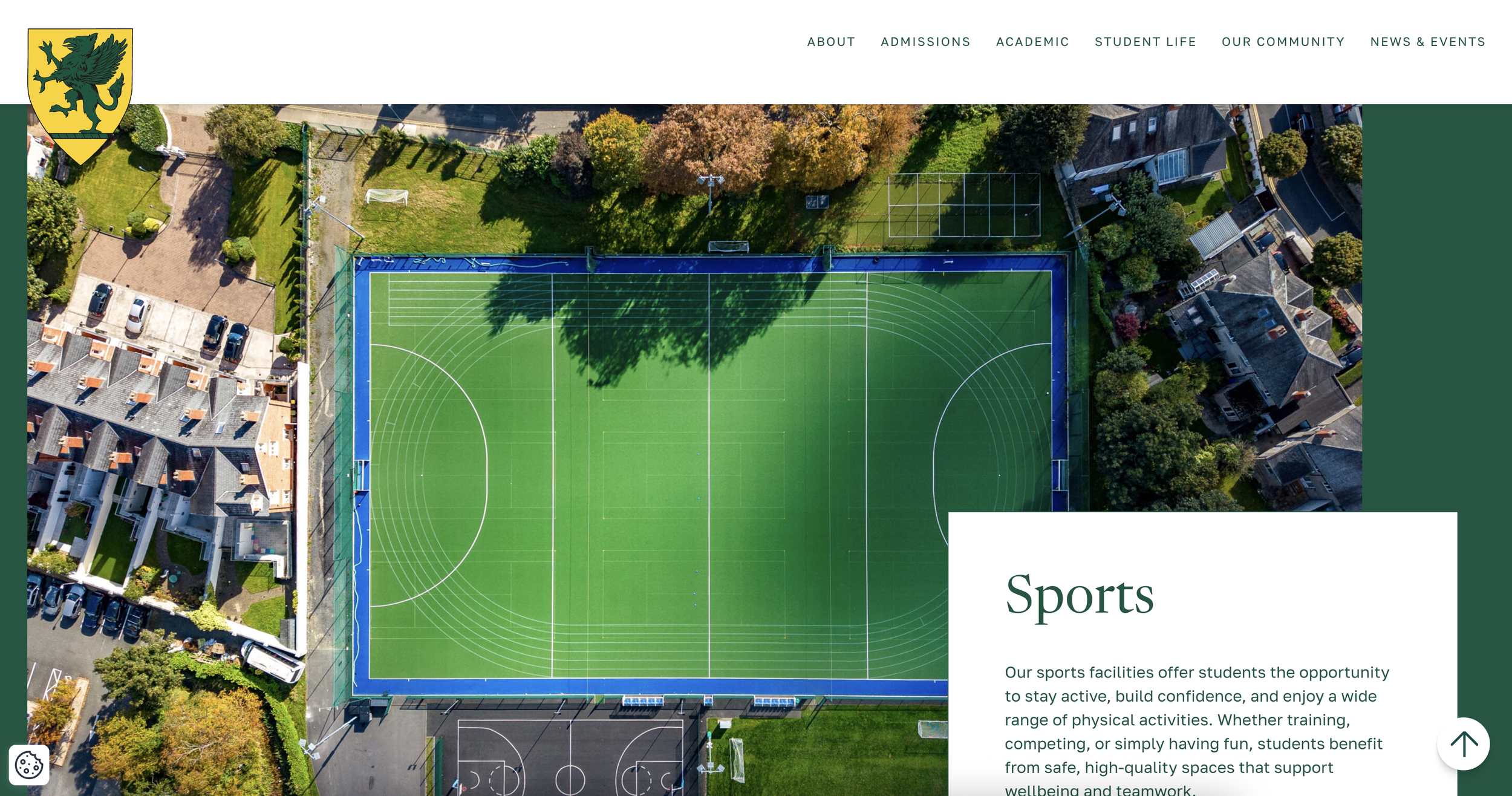 This ongoing collaboration produced a complete visual library that the school now uses across their redesigned website, social media channels, and printed marketing materials. From sweeping aerial views showcasing the campus in its leafy Dublin 6 setting to intimate ground-level shots of students in action, every frame was crafted to reflect the school's century-long tradition of excellence.